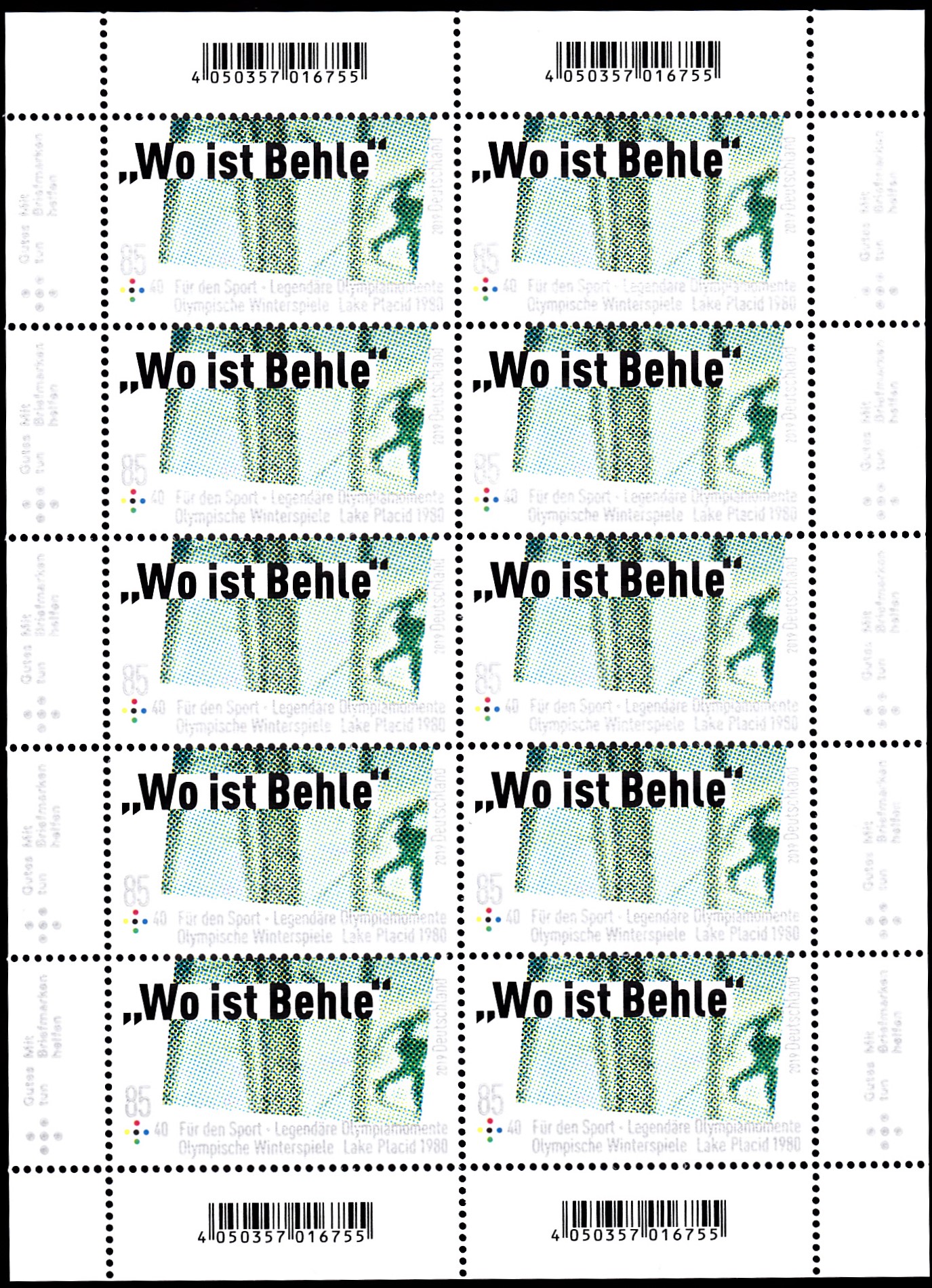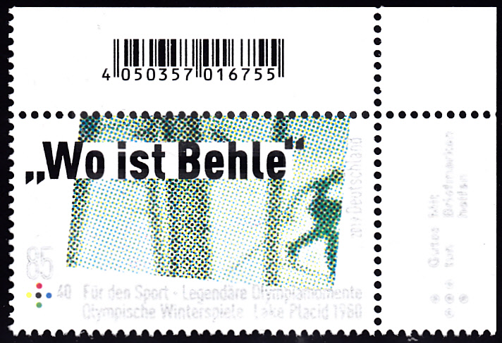 An diese Episoden erinnert die Marke zu 85+40 Cent der Markenserie "Für den Sport" 2019 und zeigt ein verpixeltes Bild von Jochen Behle. Hier eine Marke vom Eckrand mit EAN-Codierung.