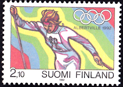 In Finnland ist zu den Winterspielen 1992 diese Marke (MiNr 1161) mit einem Skilangläufer erschienen.