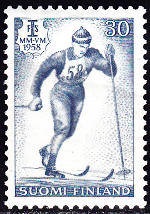 Zu den 22. Nordischen Skiweltmeisterschaften 1958 in Lahti (Finnland) ist in Finnland diese Marke (MiNr 490) mit einem Skilangläufer erschienen.
