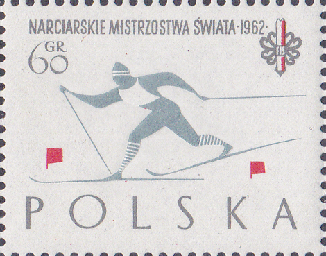 Zu den Nordischen Skiweltmeisterschaften 1962 in Zakopane erschien in Polen diese Marke (MiNr 1295) mit einer Darstellung zum Skilanglauf der Herren.