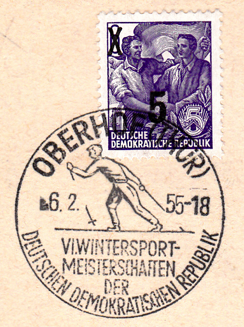 Die Sowjetunion verausgabte am 29.1.1964 eine Serie von fünf geschnittenen Marken zu den Olympischen Spiele 1964 in Innsbruck. Hier der Wert zu 4 Kopeken (MiNr 2867B) mit der Abbildung einer Skilangläuferin. Am 4.2.1964 erschien diese Marke auch als gezähnte Marke.
