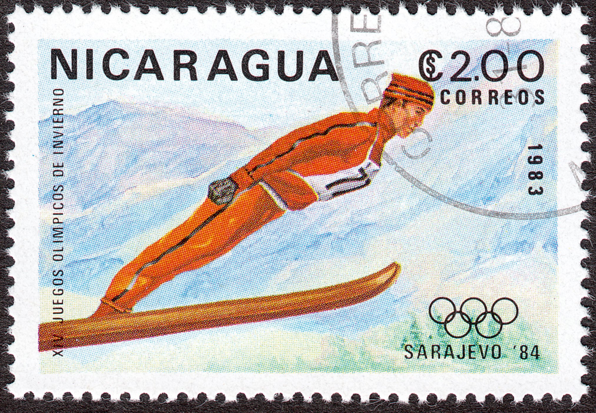 Dieser Teilnehmer aus Nicaragua zeigt uns bei den Olympischen Winterspielen 1984 in Sarajevo eine perfekte Flugphase: