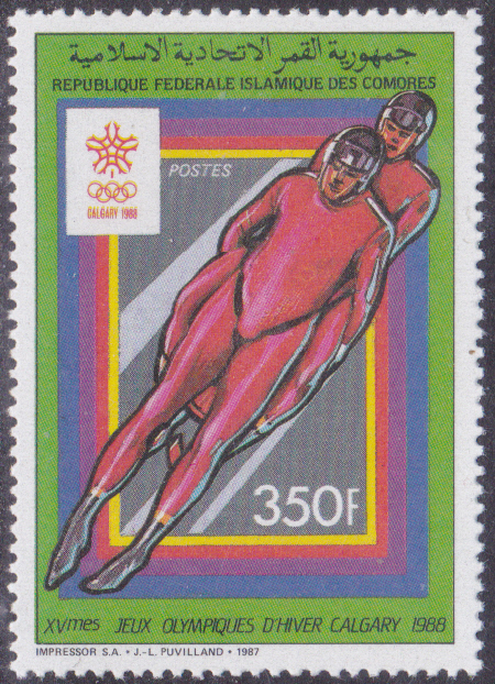 Auf den Komoren ist in einer Serie zu den Winterspielen 1988 diese Marke (MiNr 809 A) mit einem Doppelsitzer erschienen.