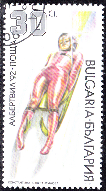 Aus einer Serie aus Bulgarien zu den Winterspielen 1992 kommt diese Marke (MiNr 3918) mit einem Rodler.