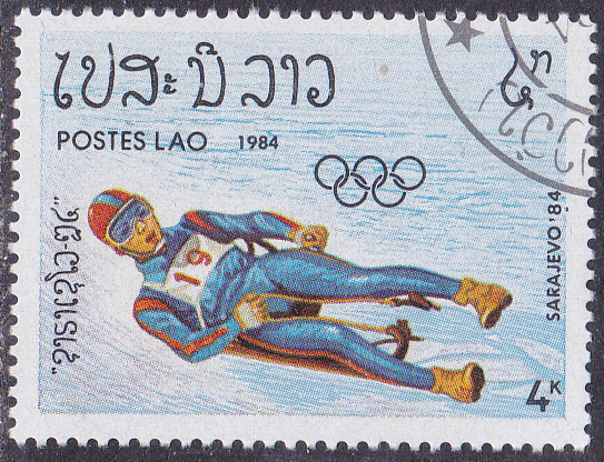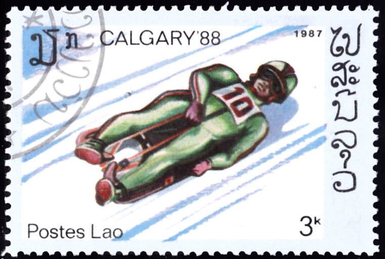 Aus Laos kommt diese Marke (MiNr 968) mit einem Rennrodler.