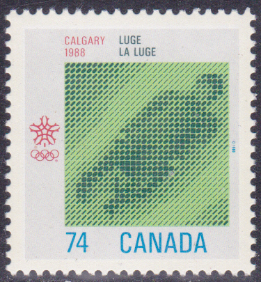 Zu den Winterspielen in Calgary erschien 1988 in Kanada eine (MiNr 1078) mit einem Rennrodler.