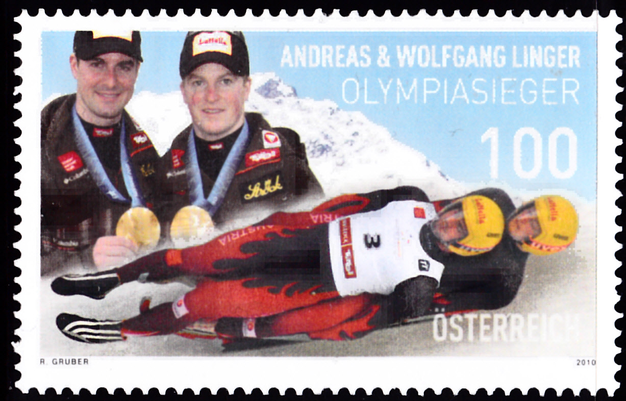 In einer thematischen Markenausgabe der ehemaligen DDR zu den "Olympischen Winterspiele 1984" zeigt die MiNr. 2839, der mehrfarbige Zuschlagswert 10 + 5 Pfennig, einen Männer-Doppelsitzer.
