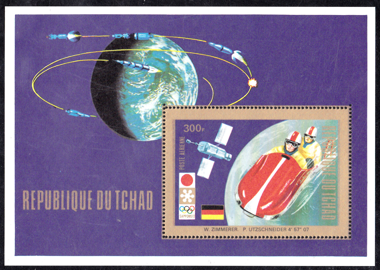 Zum Sieg von Zimmerer/Utzschneider bei den Oöympischen Spielen 1972 im Zweierbob ist im Tschad eine Blockausgabe (MiNr Block 47 A mit Marke MiNr 564) erschienen.