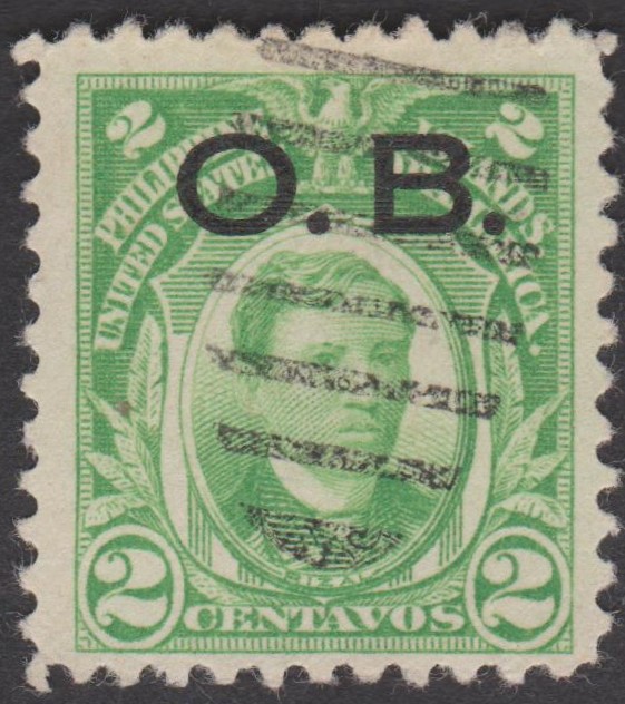 Philippinen Dienstmarke MiNr. 5 erschien am 18.05.1931, indem die Freimarke MiNr. 275 A mit einem Buchdruck-Aufdruck "O. B." versehen wurde.