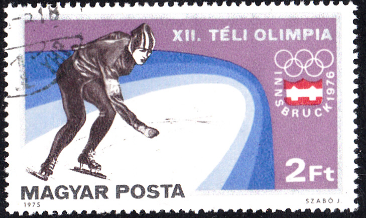 Diese Marke zu 2Ft (MiNr 3093) aus der Serie aus Ungarn zu den Olympischen Winterspielen 1976 in Innsbruck bildet einen Eisschnellläufer ab.