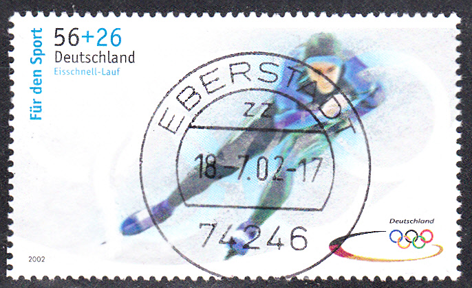 In der Serie der Sporthilfemarken zu den Olympischen Winterspielen 2002 in Salt Lake City erschien auch eine Marke (MiNr 2238) mit einem Eisschnellläufer.