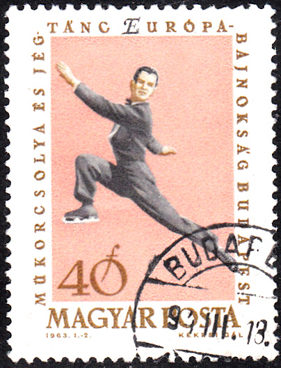 Zu den Europameisterschaften 1963 im Eiskunstlauf erschien in einer Serie in Ungarn auch diese Marke (MiNr 1899 A) mit einem Eiskunstläufer bei einem Sprung.