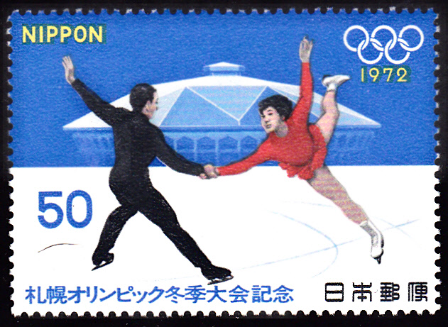 Auf einer Marke aus Nord-Korea (MiNr 1941) zu den Winterspielen 1980 sind die Olympiasieger 1976 und 1980 im Paarlauf Irina Rodnina und Alexander Saitsew abgebildet.
