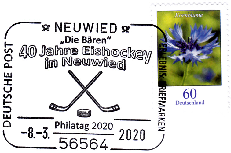 Dieser Sonderstempel vom 8.3.2020 aus Neuwied dokumentiert die Existenz dieser Eishockeyvereine in den Jahren 1980 bis 2020.