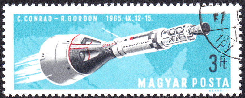 Eine Marke aus Ungarn (MiNr 2306 A) aus der Serie "Bemannte Weltraumfahrt" zeigt die mit der "Agena" zusammengekuppelte "Gemini 11" über Nordaustralien. Auf der Marke ist das Datum des Fluges falsch angegeben ( 1965 statt 1966)