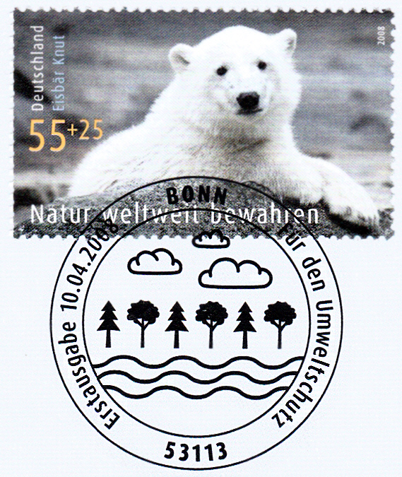 Hier zeige ich nun auch eine postfrische Zuschlagsmarke "Umweltschutz" aus dem Jahre 2008 mit dem Eisbären "Knut" (MiNr 2656).