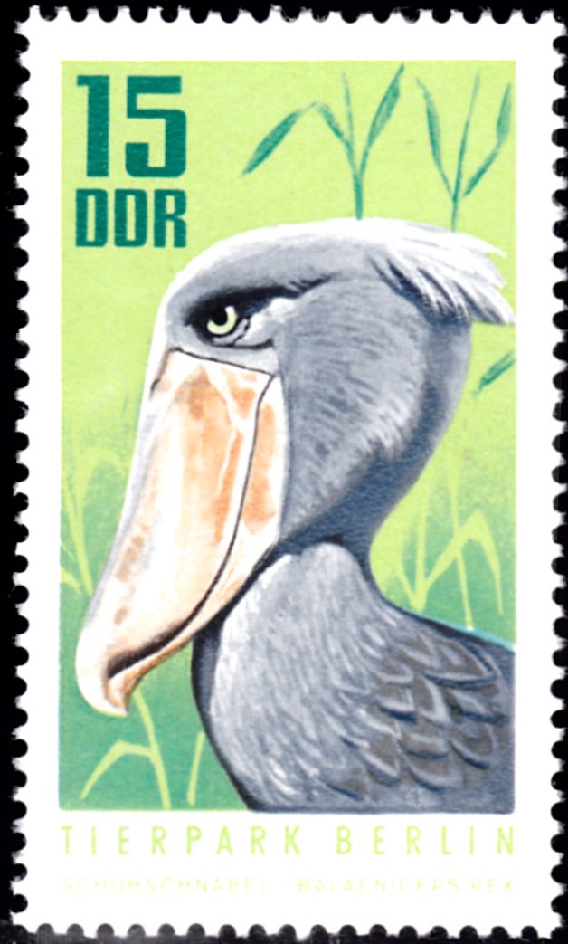 Einen Schuhschnabel (Balaeniceps rex) sehen wir auf der Marke zu 15 Pfennig (MiNr 1618).