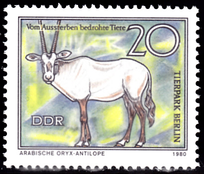 Auf der Marke zu 20Pf (MiNr 2525) wird eine Arabische Oryx-Antilope (Oryx leucoryx) gezeigt.