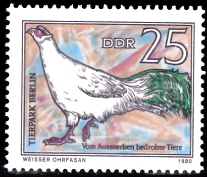 Ein Weißer Ohrfasan (Crossoptilon crossoptilon) wurde als Motiv für diese Marke zu 25Pf (MiNr 2526) ausgewählt.