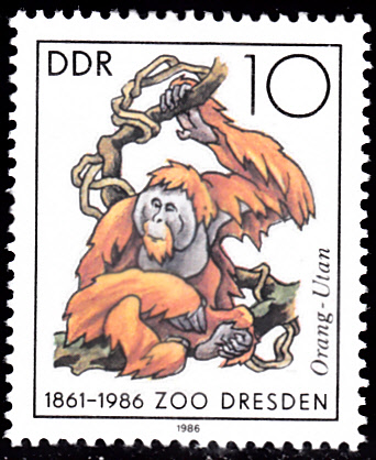 In der Serie Zootiere aus der DDR erhielt der Zoo Dresden eine Marke (MiNr 2031)mit der Abbildung von einem Orang-Utan (Pongo pygmaeus) .
