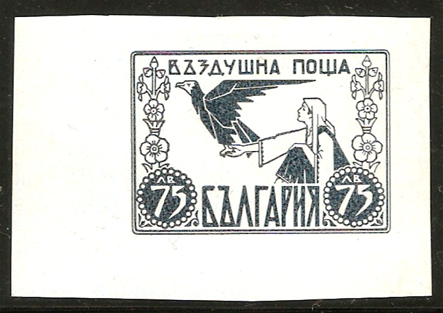 Der in Bleistift und Temperafarben gehaltene Entwurf wurde mit kleinen Änderungen als Flugpostmarke MiNr. 696 am 28.Juni 1949 zum "Tag der Briefmarke" zum 7. Kongreß des bulgarischen Philatelistenverbandes in Bögen zu 50 Marken herausgegeben.