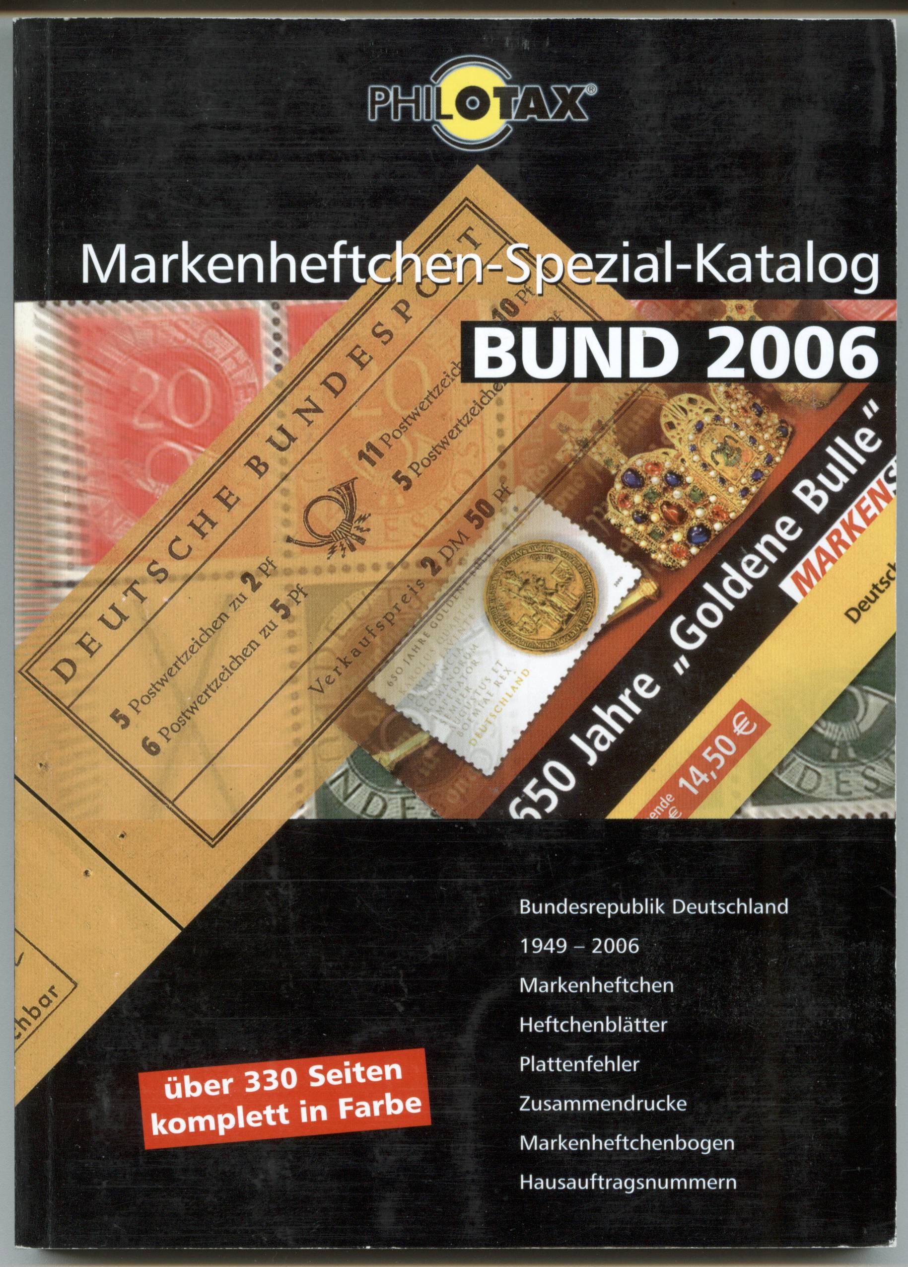 Neben dem Katalog Handbuch Markenheftchen von Michel (im dortigen Forumsteil bereits vorgestellt) gibt es noch weitere Kataloge zum Thema Markenheftchen. Als Beispiel soll für Bund vorgestellt werden der Katalog von Philotax. Im Gegensatz zum Michel sind hier nur die Ausgaben von Bund ab Posthorn enthalten, mit Abbildungen von Heftchenbogen, Heftchendeckeln, Heftchenblättern und Zusammendrucken.