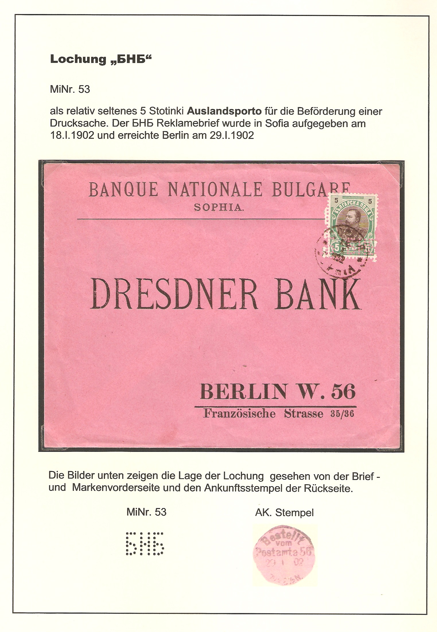 Bankbelegen hat den Vorteil, daß Ihr die recht schwierigen und unübersichtlichen bulgarischen Portostufen der jeweiligen Zeiten genau studieren könnt. Damals wie heute hatten die Banken nichts zu verschenken, demzufolge sind die allermeisten Belege portogerecht frankiert.