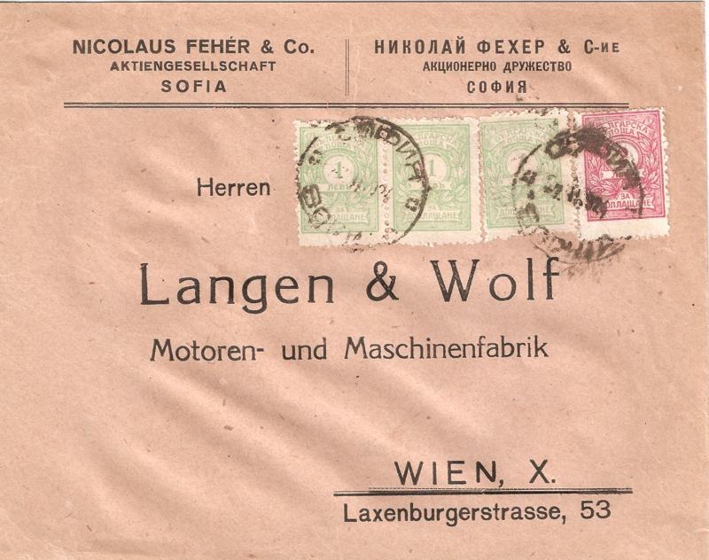 Es handelt sich um einen 17,5 x 13,4 cm. großen Geschäftsbrief der 2. Gewichtsstufe. Freigemacht mit MiNr. 184 + 3er Streifen MiNr. 185. Befördert von Sofia nach Birmingham in England. Auf der Rückseite befindet sich eine Abbildung einer Dampfmaschine und ein Papierverschluß der Firma.