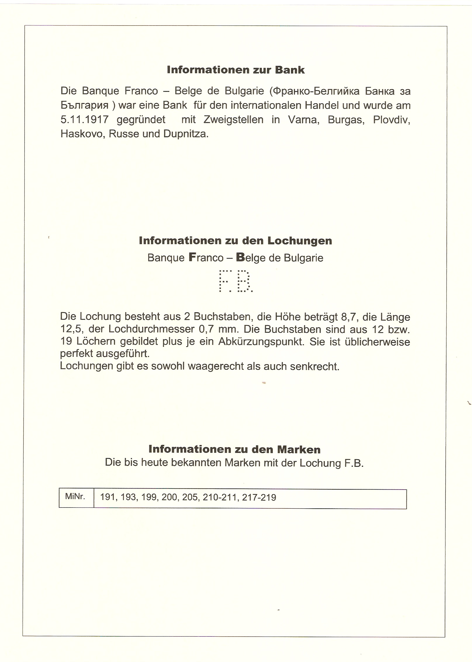 "Bulgarian Perfins Handbook and Catalogue" von Dr. sc. Georgi Popov aus 2009 entnommen habe.