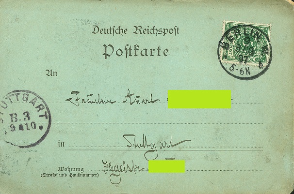 In diesem Stempelbeispiel ist der Punkt hinter der "9" nicht mit abgeschlagen. Vielleicht ist er 1897 als Stempelinhalt bereits so abgenutzt, dass er nicht mehr im abgeschlagenen Stempelbild erscheint.
