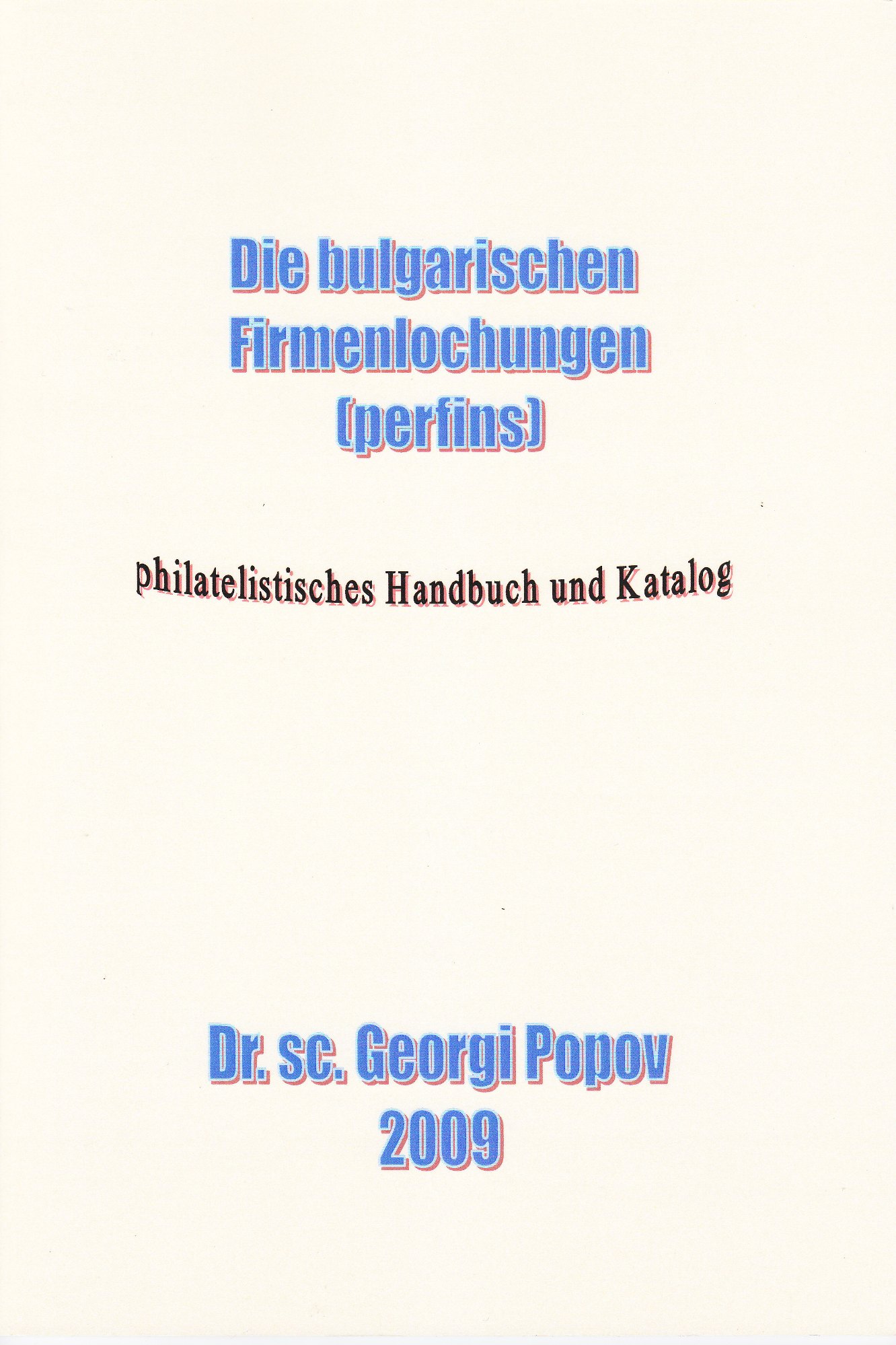 Zum Spezialgebiet "Die bulgarischen Firmenlochungen" = perfins gab Dr. sc. Georgi Popov 2009 dieses Werk heraus, "philatelistisches Handbuch und Katalog":