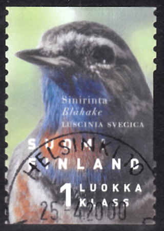Diese Rollenmarken aus Finnland (MiNr 1462) zeigt ein Rotstern-Blaukehlchen (Luscinia svecica svecica). Das Nominale zum Zeitpunkt der Ausgabe der Marke betrug 3 M.