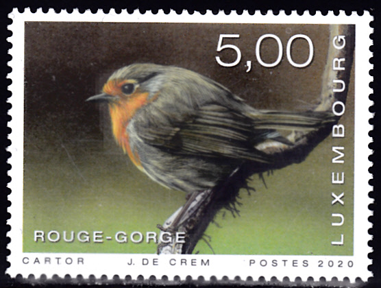 In Luxemburg ist diese Marke (MiNr 2226) mit einem Rotkehlchen (Erithacus rubecula) ertschienen.