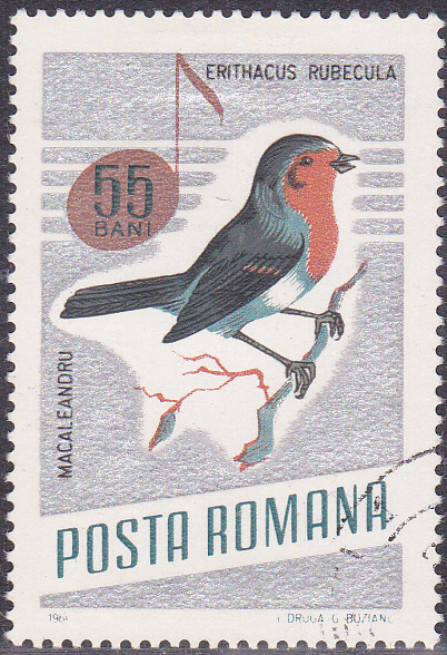In einer Serie "Singvögel" gab es in Rumänien auch eine Marke (MiNr 2504) mit einem Rotkehlchen (Erithacus rubecula).