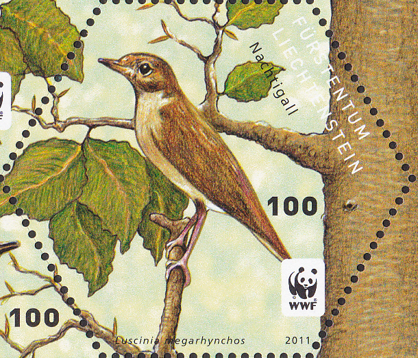 In Liechtenstein ist diese Marke (MiNr 1602) mit einer Nachtigall (Luscinia megarhynchos) erschienen.
