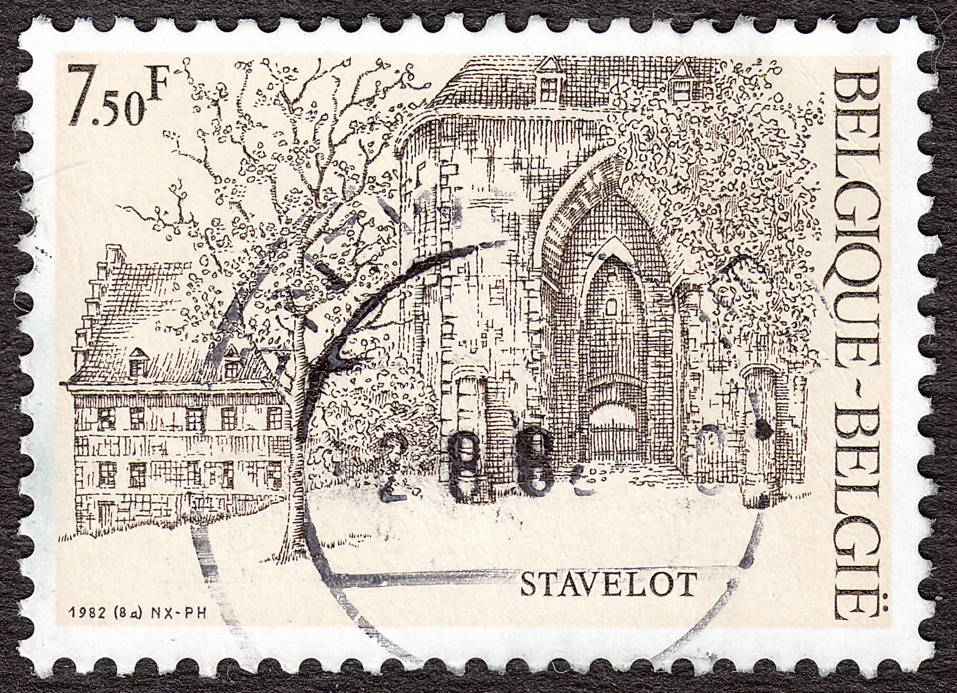 Dieses am 19.06.1982 erschienene Postwertzeichen aus Belgien stellt die Ruine der Klosterkirche der alten Abtei Stavelot dar: