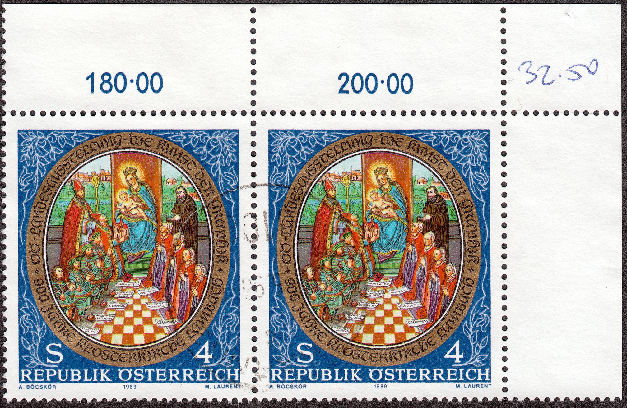 Diese Sondermarke erschien 1989 zum 900 jährigen Jubiläum der Klosterkirche Lambach in Österreich, hier als Paar vom Eckrand 2: