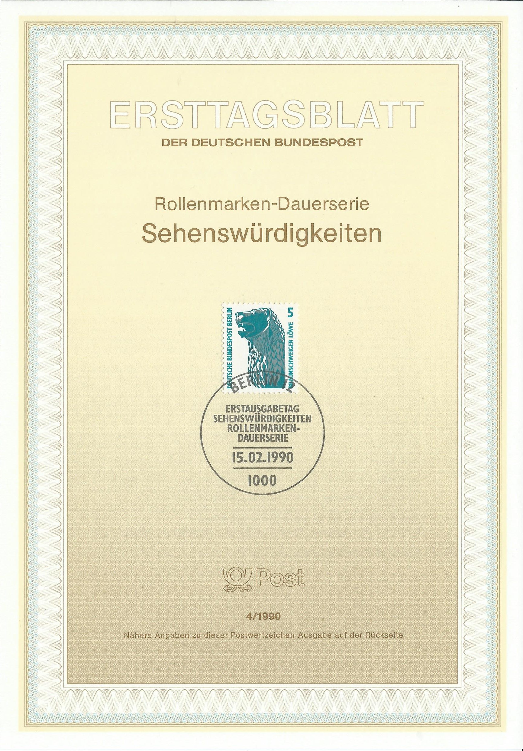 Von den beiden letzten Werten zu 5 Pf (15.2.90) und 70 Pf (Helgoland, 21.6.90) habe ich leider keine Ersttagsblätter. Falls mir da jemand aushelfen kann, bitte gerne die Bilder einstellen.