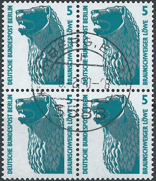 der Wert zu 5 Pf als gestempelter 4-er-Block vom rechten Bogenrand und Formnummer. Gestempelt wurde in Stuttgart am 16.12.91.