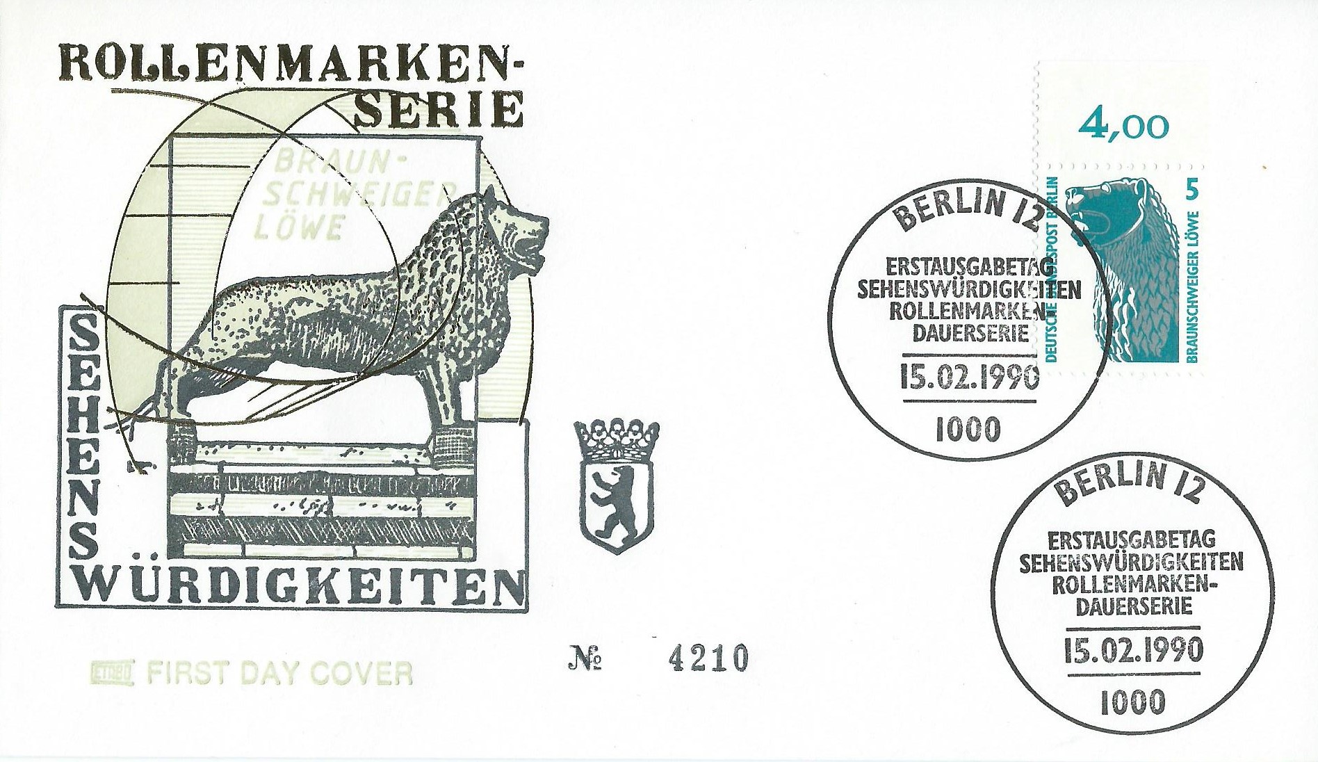 ein postfrisches linkes oberes Eckrandstück zu 5 Pf mit entsprechendem Reihenwertzähler und dem charakteristischen senkrechten Farbbalken im linken Seitenrand: