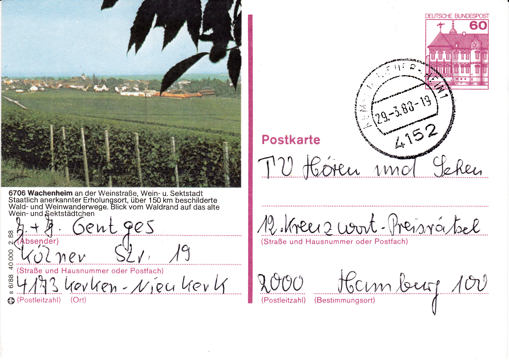Maschinenwerbestempel vom 21.11.1963 mit Werbeeinsatz "Weinfrohe Stadt am Main". Mit im Bild auch wieder ein "Bocksbeutel".