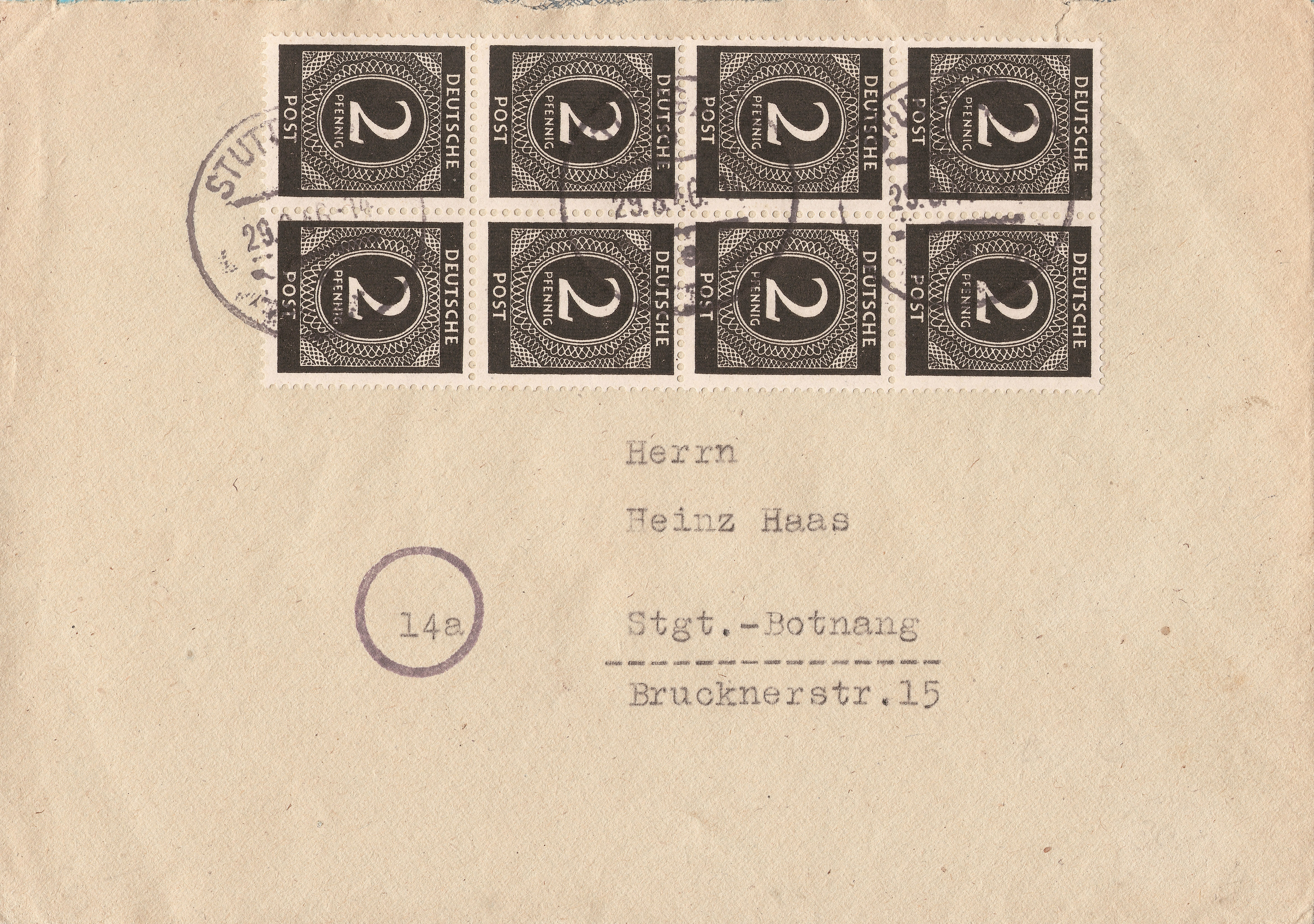 Auf Feld 1 = Eckrand 1 = linke obere Bogenecke kommt bei HAN 4082-46.1 sowie HAN 4118-46.1 in der Reihenwertziffer im Oberrand der Plattenfehler "0 vor dem Komma beschädigt" vor:
