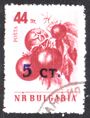 Auf diese Marke aus Bulgarien (MiNr 1290) sind Tomate (Lycopersicon esculentum) abgebildet. Es gibt si auch ohne Aufdruck (MiNr 1092A und B, gezähnt und geschnitten).