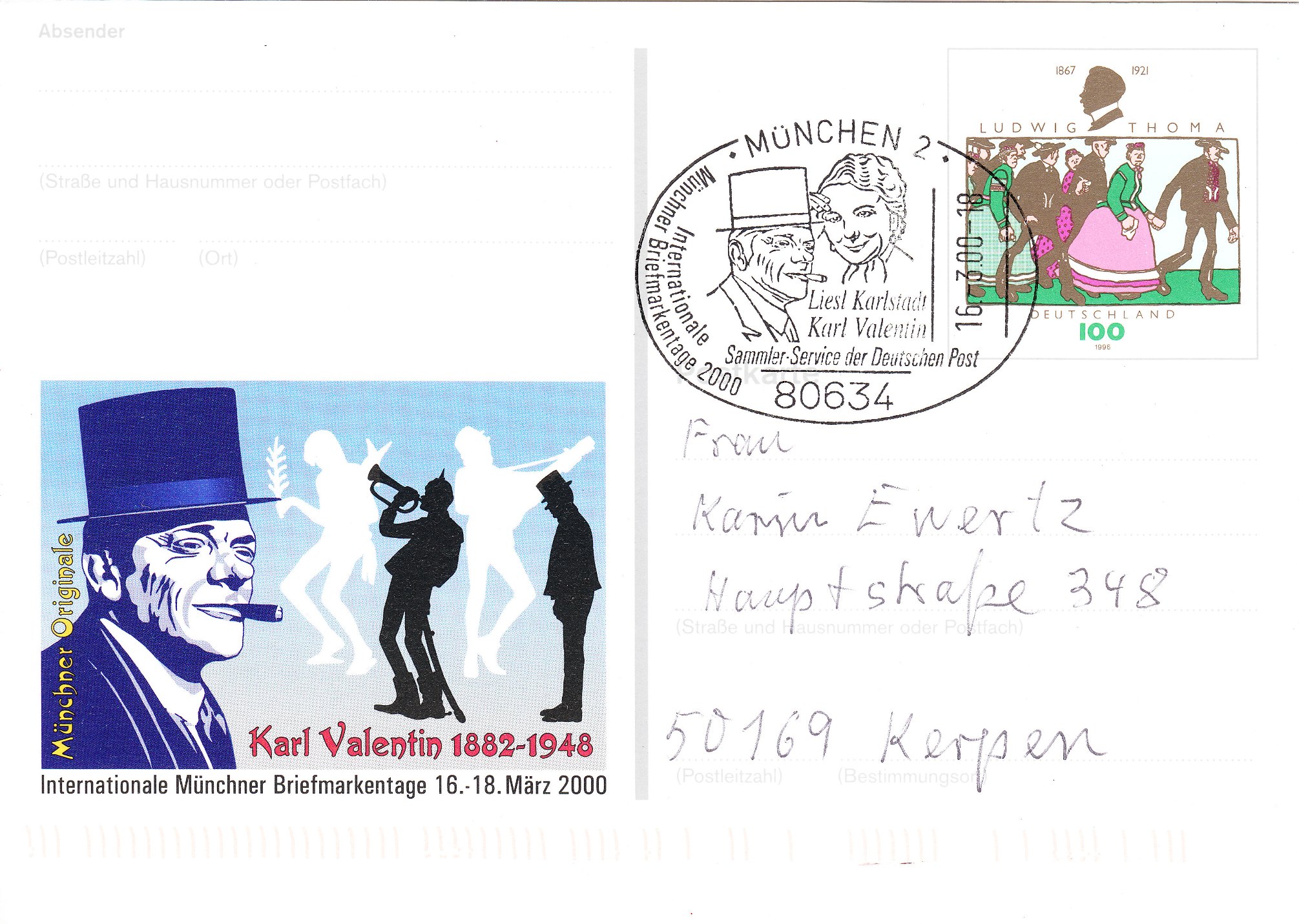 Karl Valentin (* 4. Juni 1882 in München; † 9. Februar 1948 in Planegg bei München), mit bürgerlichem Namen Valentin Ludwig Fey, war ein deutscher Komiker, Volkssänger, Autor und Filmproduzent.