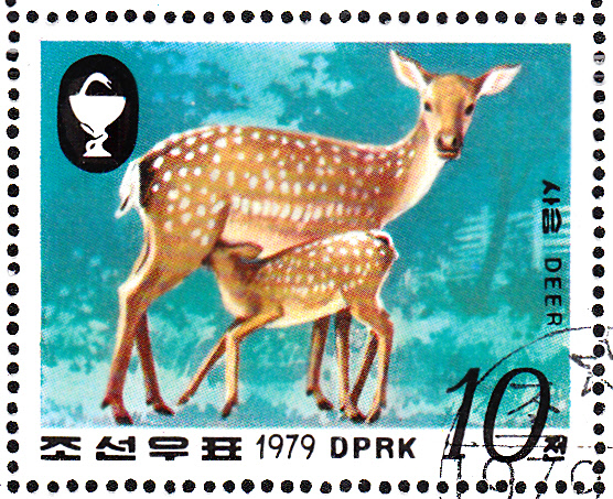In Nordkorea erschien am 5.10.1979 eine Serie mit Motiven aus der Damwildzucht. Die Marke zu 5 Ch (MiNr 1898) zeigt die Aufzucht mit Milchflasche.