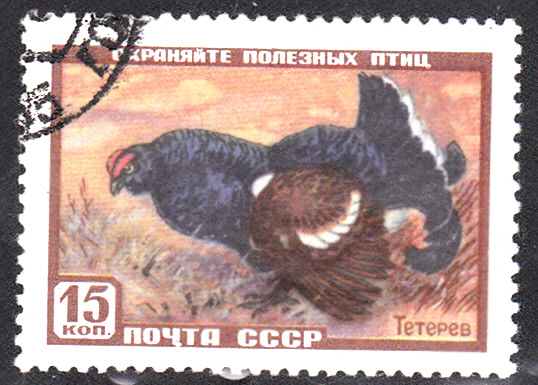 Aus Bulgarien kommt diese Marke (MiNr 1217) mit der Abbildung eines Auerhahnes.