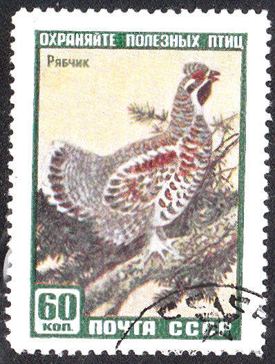Aus Bulgarien kommt diese Marke (MiNr 1217) mit der Abbildung eines Auerhahnes.