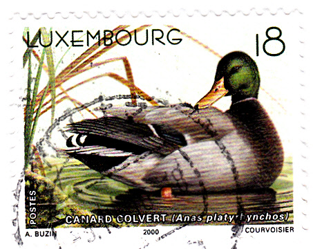 Als Wildgeflügel wurde bereits die Stockente vorgestellt. Hierzu eine weitere Marke mit einer Stockente aus Luxemburg (MiNr 1503) auf Brief.