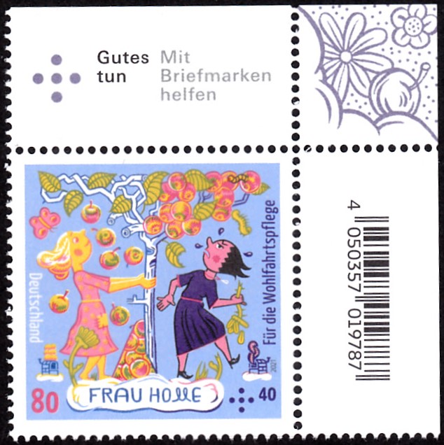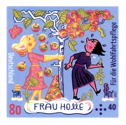 Die Wohlfahrtsmarken 2021 der Deutschen Post AG sind mit Motiven zum Märchen "Frau Holle" erschienen.