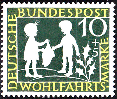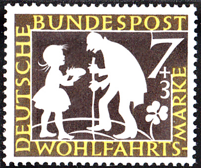 Dies sehen wir auf der 7 + 3 Pfennigmarke (MiNr 322) aus der Wohlfahrtsmarkenserie 1959.